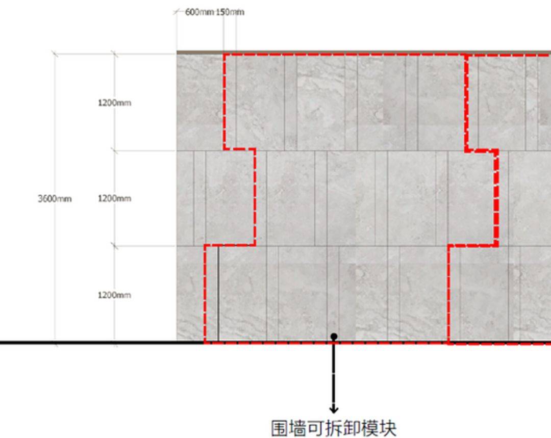 ■ 景墻立面:景墻面層材料采用模塊化設(shè)計(jì)全部采用背栓式固定可是實(shí)現(xiàn)全部拆卸及二次重組。