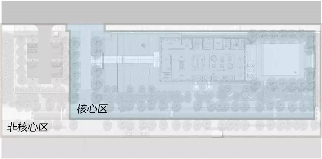 根據(jù)現(xiàn)場的實(shí)況,示范區(qū)空間很明確的被確立在一條狹長的帶狀地塊上,因此在空間整體流線上會更加通直。