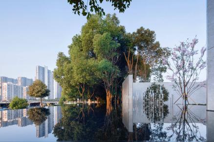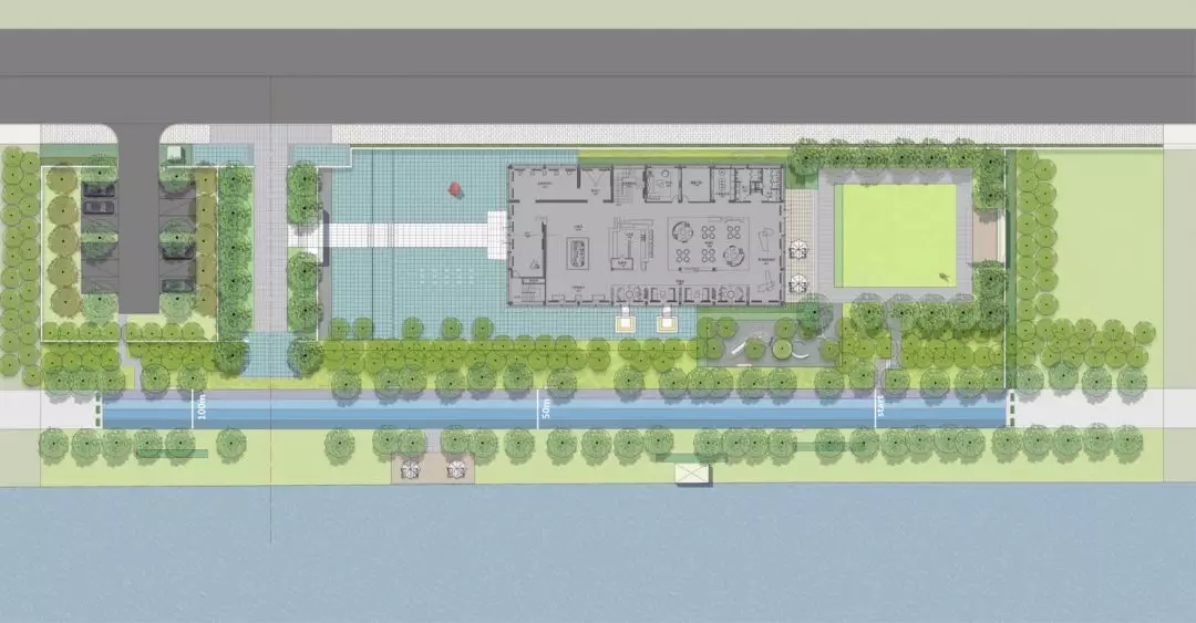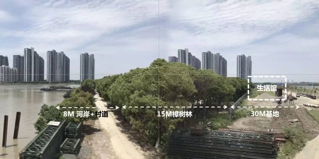 項(xiàng)目位于常熟南部新城,項(xiàng)目場地北鄰金灣路、南依東環(huán)河,河道與生活館相隔23米,場地已有的樟樹林也將成為項(xiàng)目重要組成部分,我們將它進(jìn)行完全的保留。