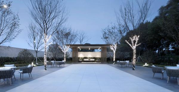 后場空間除了為來訪者的參觀流線帶來廣闊與自然親近感,設(shè)置庭架也為室內(nèi)的咖啡吧與洽談區(qū)延續(xù)更多戶外的可能性。同時對于業(yè)主單位,大區(qū)域場地可以為活動與營銷提供多功能轉(zhuǎn)換的使用選擇。