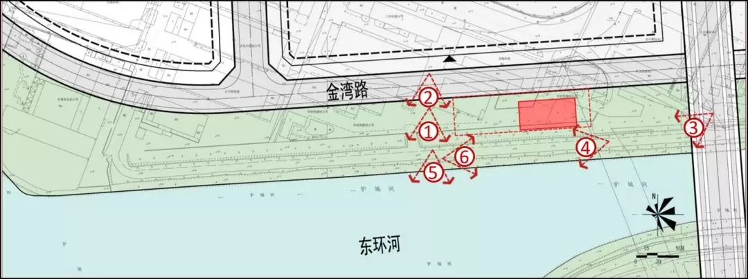 就場地周邊情況而言,現(xiàn)有的東環(huán)河靠近項(xiàng)目展示區(qū)位置河岸未經(jīng)修整,且經(jīng)常有貨船停靠。沿河綠帶植物稀疏。規(guī)劃路為多個項(xiàng)目的施工通道,不利于項(xiàng)目展示的品質(zhì)。