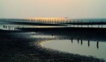 灘涂:不同于傳統(tǒng)南方的小河流域,南通的水域更為遼闊,其中以灘涂居多的沿海地帶形成了當?shù)販\灘入水的“灘涂”地貌特征。每當四季潮汐,天光便云影出夢幻般的海上家園場景。