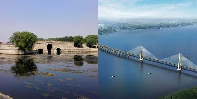 南通八里古橋(左);南通滬通長江大橋(右)? 網(wǎng)絡