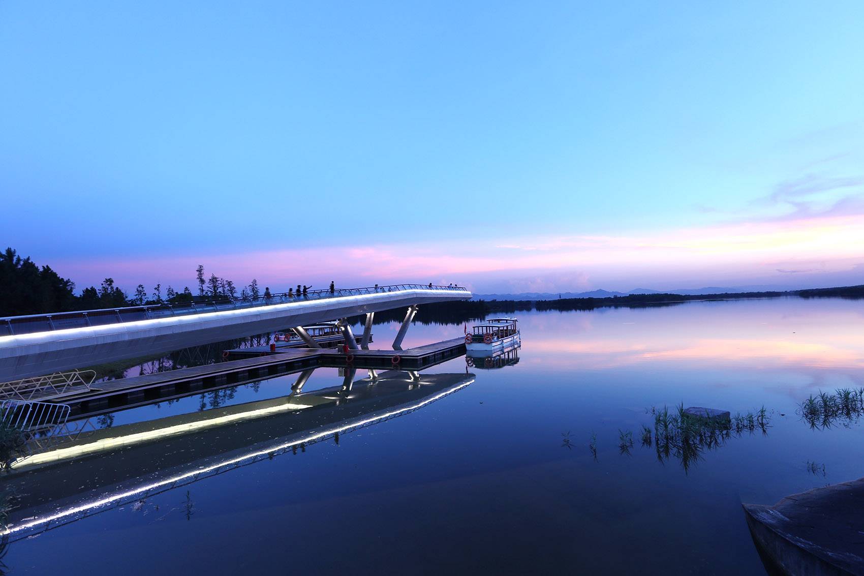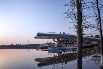 At the end of the tour route is the levee that extends into the Lan Lake and is the climax point of the scenic area. The upper level is a viewing deck that opens out into the lake, offering the best view of the lake; the lower level is a waterfront dock for visitors to board their boats. The design aims to bring the grand landscape together at one point for visitors to experience. The man-made landscape will only pithily tap the nature, without impacting the environment.
