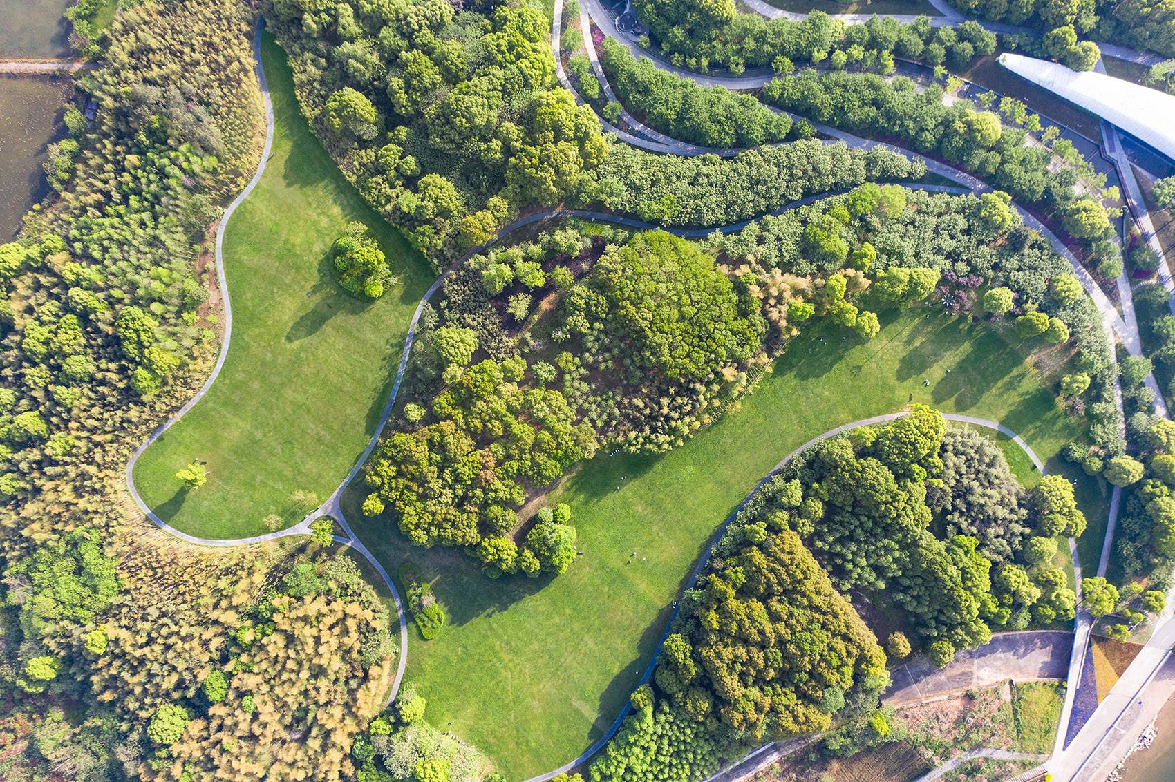 A large swath of nursery where planted trees are sold and left large areas of bare land, leads to erosion and heavy dusting. We propose to grade the landform to connect the bare lands and seed the land as lawn. The silhouette was then sophisticated through canopy and shrub planting, resulting in a large lawn with patches of dense vegetation and spaces of various scales.