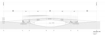 Pedestrians and cyclists moving inside the bridge will be parts of the facade, changing the view in different ways by creating light shadow play for the observers. The observers on the sidewalk will perceive the bridge with different sensations at different times of the day and at different speeds, rather than a static structure. This dynamic view is very suitable for a transportation structure.