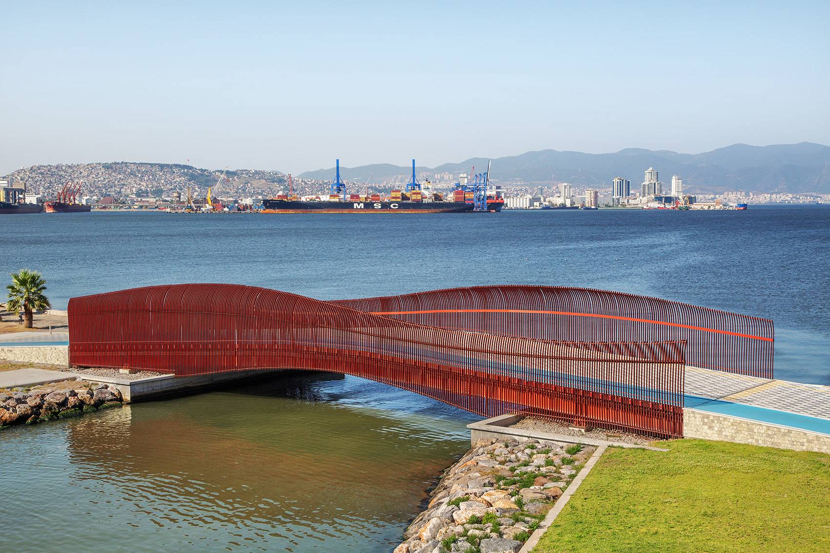 The pedestrian and bicycle bridge located at Bayrakl? coast was designed with the aim of making the coast a more accessible place for pedestrians, cyclists and service vehicles within the scope of IzmirDeniz project. ( IzmirDeniz project is a concept for using the seaside more efficiently).