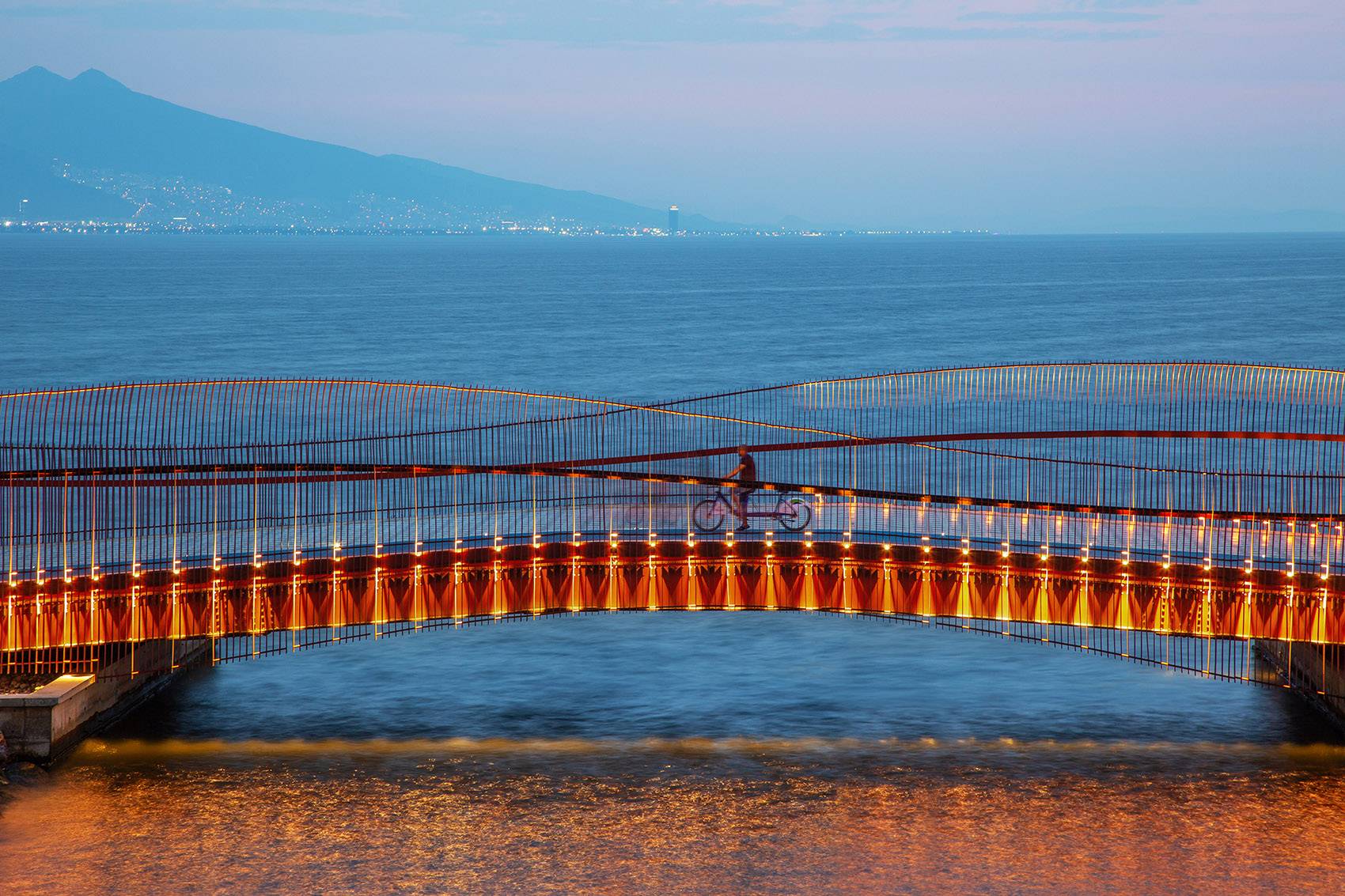 ▲路人和騎行者成為橋梁立面的一部分,pedestrians and cyclists moving inside the bridge will be parts of the facade ?ZM Yasa Architectural Photography