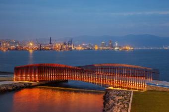 ▲夜間的橋梁,Bayrakl? Coast Pedestrian Bridge by night ?ZM Yasa Architectural Photography