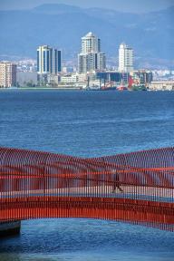 Bayrakl?海港人行橋及自行車橋是IzmirDeniz整體海岸優(yōu)化項(xiàng)目的一部分,旨在讓海港成為對步行者、騎行者以及服務(wù)車輛都更加友好的場所。