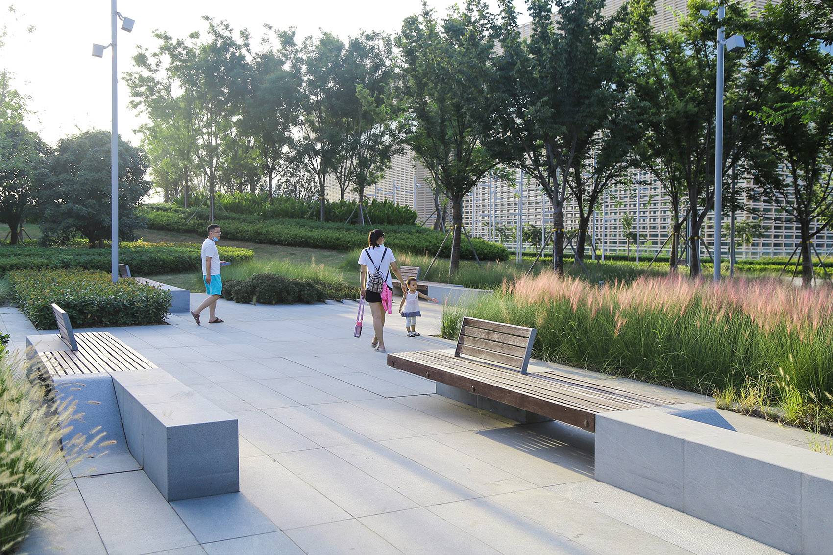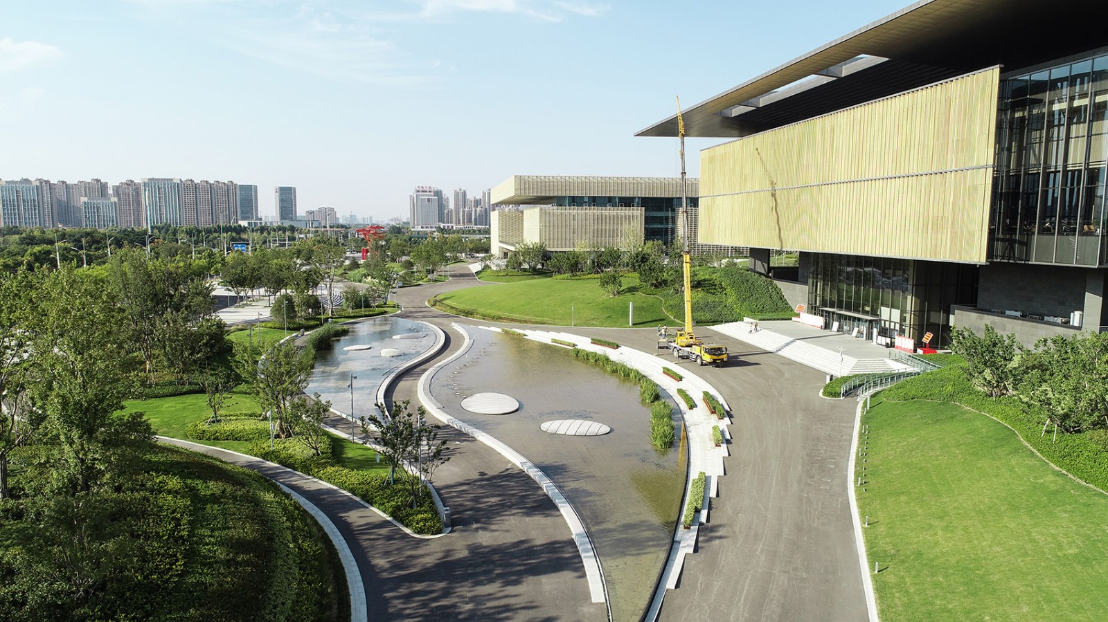 On the basis of a profound interpretation of the planning structure and architectural characteristics, the landscape of Jining Cultural Center Phase I implemented the landscape modeling of distinctive highland parks and green valleys, and through the overall vertical design, the building was completely reconstructed. Local relations. At the same time, the concept of sponge city is used to integrate ecological engineering technology into the landscape design, so that the project will not only take into account the diversity of the landscape itself such as spatial structure, transportation system, environmental atmosphere, and ecological sustainability, but also in the landscape and these “uniqueness”. The space fusion between the world-class buildings in China has achieved an overall relationship of “harmonious symbiosis, organically stitching”.