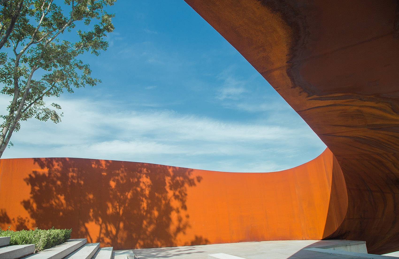 ▲入口大臺階與弧形LOGO墻,Large steps at the north entrance and curved LOGO wall ?LDG/熊世寶、肖滔、何深華