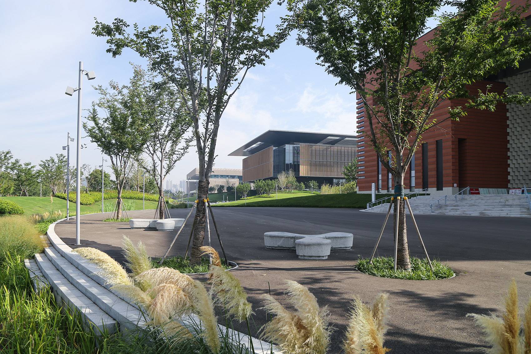 Jining Cultural Center includes a group of art exhibition halls, libraries, museums, art galleries and supporting commercial complexes. The project has been extraordinary from the beginning of its conception. The architectural design competition invited Arata Isozaki (Pritzker Prize winner in 2019), Mario Botta, and Nishizawa Ryue (Lizker Prize winner in 2020), academician He Jingtang and other world-class masters and well-known architectural design units participated. This is an extremely difficult challenge. Jining Cultural Center integrates multiple functions such as “recreation, art, exhibition, collection, creation, and commerce”. Each building unit needs to be presented under the creation of world-class architects. The characteristics of “uniqueness” need to be integrated and coexist in harmony. The participation and practice of landscape is to follow the basic principle of “organic stitching” to shape the external public environment of “integrity, empathy, and coordination”, and organically integrate diverse urban cultural public buildings through innovative thinking of landscape environment For the whole, the cultural center is constructed together, and the complementarity of architecture and landscape has created a new cultural landmark and “city name card” in Jining.