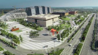 The project base is located in the core location of Taibai Lake New District, Jining City. It is adjacent to Taibai Lake on the west side and overlooks the Beihu Ecological Tourist Zone on the south side. The surrounding natural resources are very superior. The project land is close to Shengxian Road and Canal Road, and the urban road network transportation system in the area is developed. In terms of location, there are important municipal projects such as Jining Administration Center, Civic Park, Sports Center, Urban Exhibition Hall, Children’s Park, etc. within the 5km metropolitan area. The construction of a cultural center is undoubtedly another major measure to improve the overall level of urban public culture and the competitiveness of urban brands.