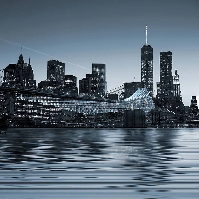 如果紐約的標志性構(gòu)筑物布魯克林大橋變成一座漂浮市鎮(zhèn),會是什么樣子?這正是Daniel Gillen在范·艾倫協(xié)會(Van Alen Institute)發(fā)起的“重構(gòu)布魯克林大橋”競賽中提交的方案所探討的內(nèi)容?!安剪斂肆执髽颉蓖庑蔚脑O(shè)計靈感源自水邊的自然地形特征。其旨在加強公眾與自然之間的聯(lián)系,形成對適應(yīng)性再利用項目的新視角。