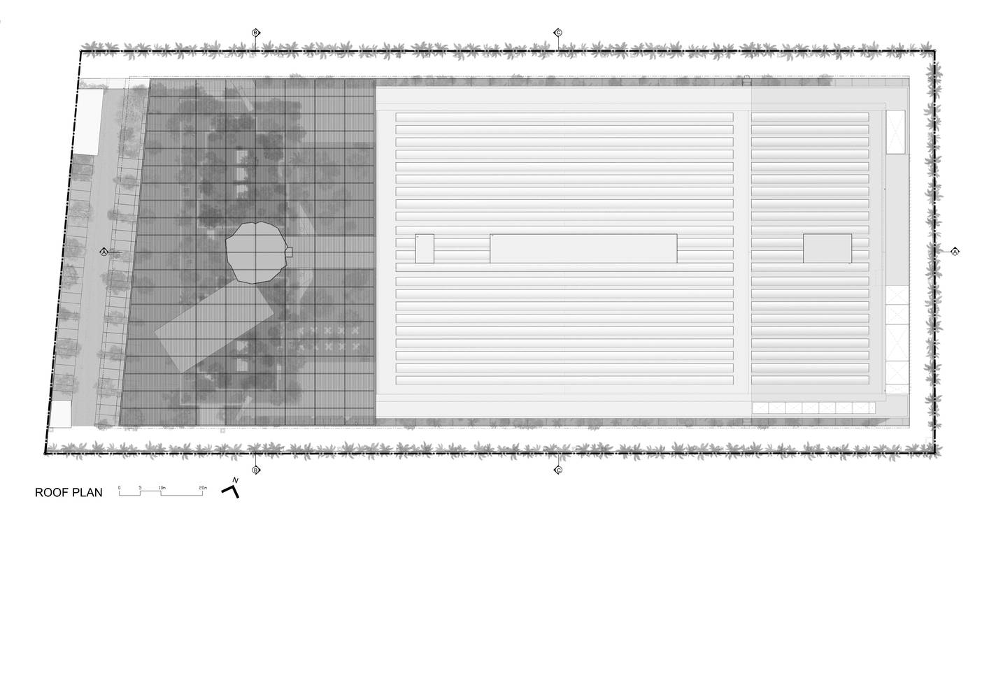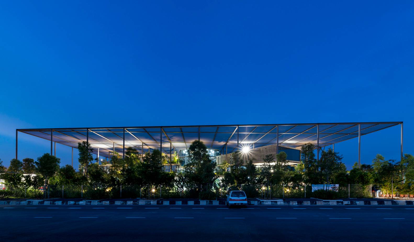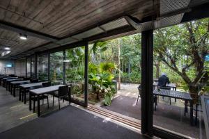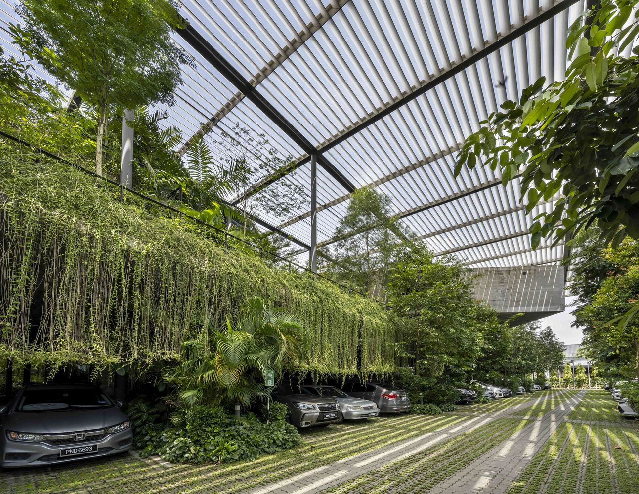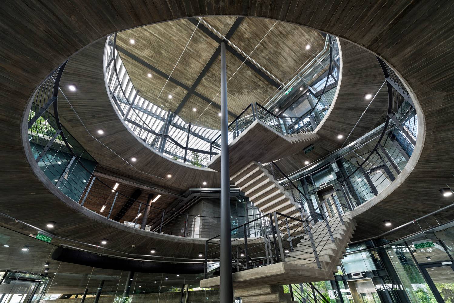 該項(xiàng)目為電子產(chǎn)品制造工廠建筑競(jìng)賽的最終獲獎(jiǎng)作品建成。場(chǎng)地位于穿透、圍繞、跨越建筑的一片森林之中,也因此建筑與自然的聯(lián)系被最大化,建筑里外都充溢著綠色、微風(fēng)、花香、鳥(niǎo)語(yǔ)和觸覺(jué)體驗(yàn)。由圓柱“森林”支撐的頂棚與辦公室和庭院連為一體,為人們提供熱帶陽(yáng)光下的保護(hù)傘。辦公室層通向屋頂花園,以此鼓勵(lì)員工們出外休息、開(kāi)會(huì)及思考。