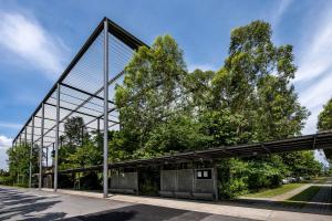 有著獨(dú)特形態(tài)的鋼筋混凝土與鋼鐵結(jié)構(gòu)、窗戶和景觀則表達(dá)了結(jié)構(gòu)和材料的設(shè)計(jì)細(xì)節(jié)。在有限種類的材料使用中,建筑物向我們展示了它是什么、它由何物制成,以及它是如何組合構(gòu)造的。這一設(shè)計(jì)手法打造了一種令員工興奮且有意義的工作環(huán)境,也讓森林的綠成為了建筑和工廠的視覺(jué)印象。并且,對(duì)宏觀和微觀氣候都很重要的森林也對(duì)人們的心理健康至關(guān)重要。