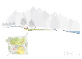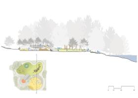這些與場(chǎng)地要素環(huán)環(huán)相扣的設(shè)計(jì)元素與通過大型木質(zhì)游樂設(shè)施的映襯而顯得更加豐富,給人一種這些設(shè)施都是使用從周圍森林里開采出來的原木制造而成的印象。