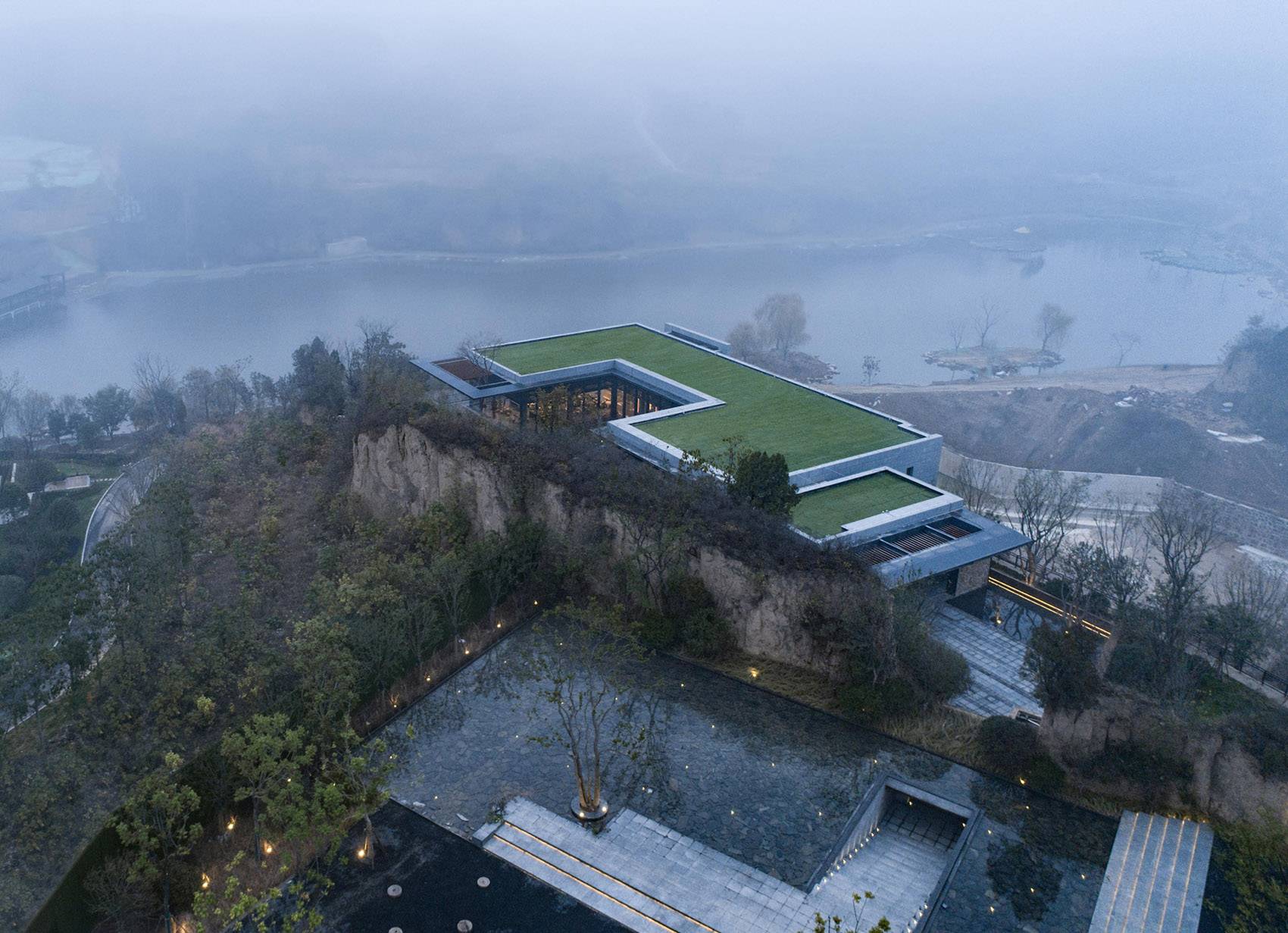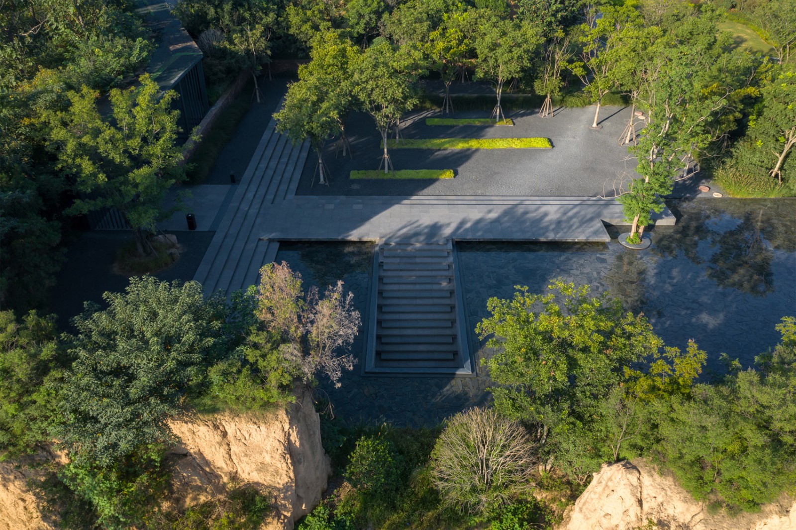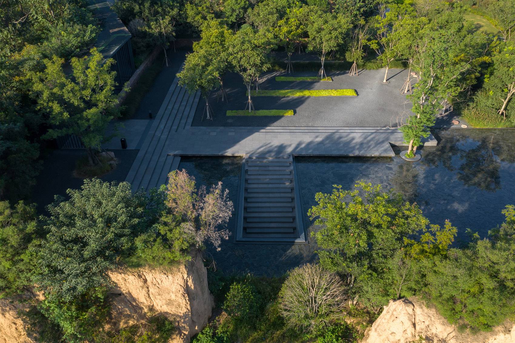 ▲利用場(chǎng)地高差和斷崖打造豐富垂直豎向景觀,create vertical landscape with height difference and cliffs ?三棱鏡建筑景觀攝影