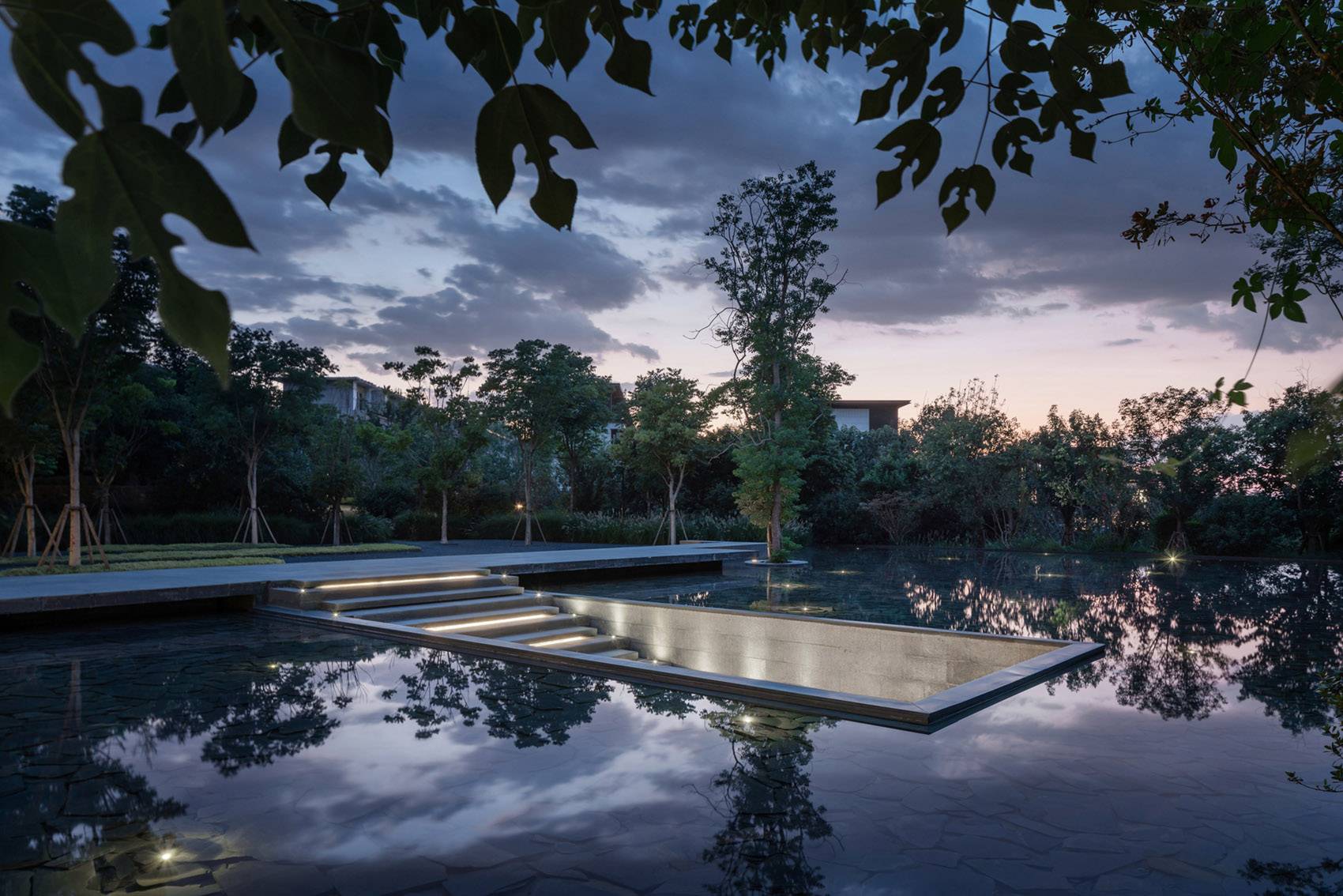 Surrounded by the lake, the terrain is as stable as Mount Tai, with a wide view, gurgling fine water, embraced by the nine-curved jade belt, and the tranquil lake water draws purple gas to the east, gaining the benefit of the world and the accumulation of water and gas. The reflection of light and shadow doubles, and the reflected sky and surrounding scenery integrate the water body with the environment and make the space more cohesive. Meteorology, address, hydrology, and architecture are all integrated into one.