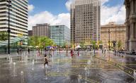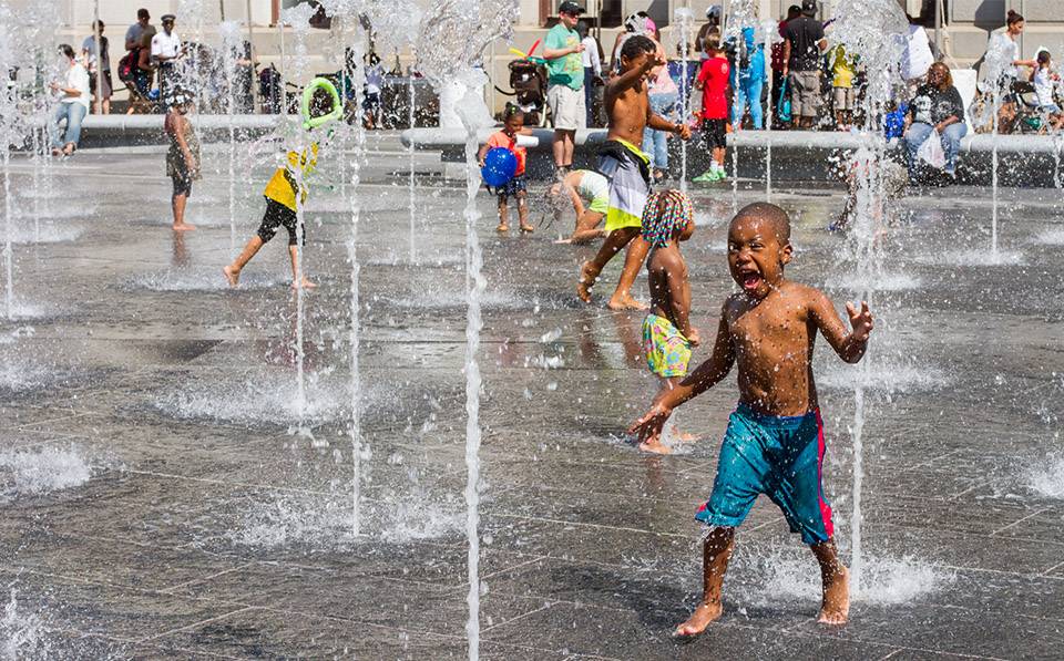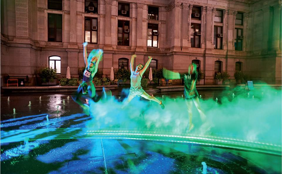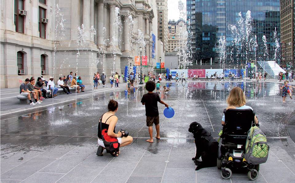 ▲戲幕噴泉:Dilworth公園的噴泉很快便成為了最受歡迎的夏日游玩地之一,這里同樣也是費城市民平日里的集會場地。The Scrim Fountain: Dilworth’s fountain has quickly become one of the most popular summertime hangouts and a common meeting ground for Philadelphians. ?OLIN / Sahar Coston-Hardy
