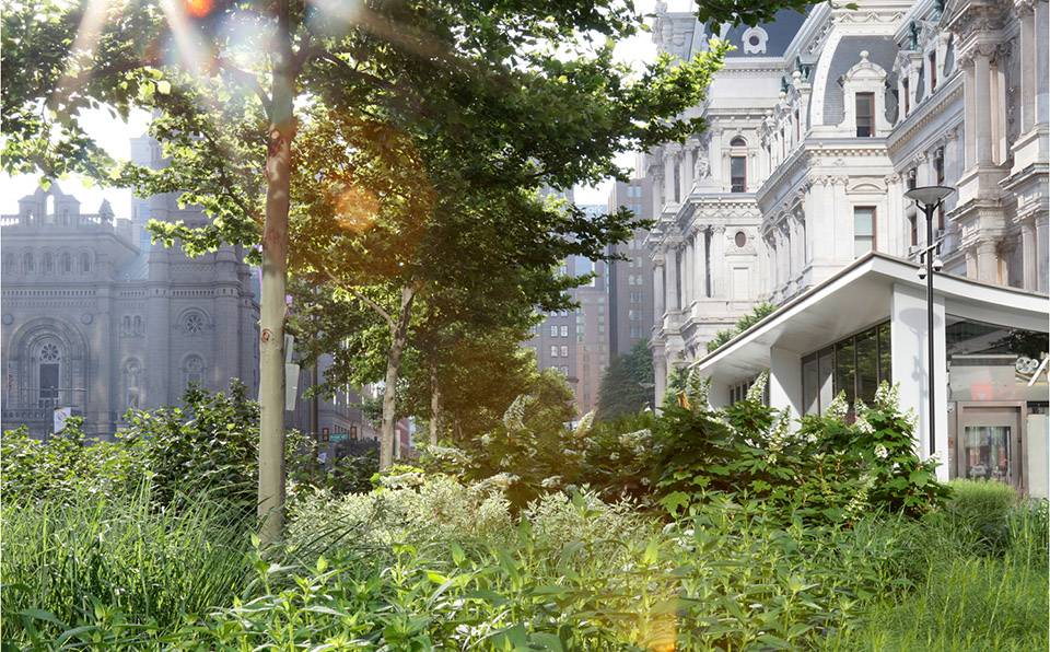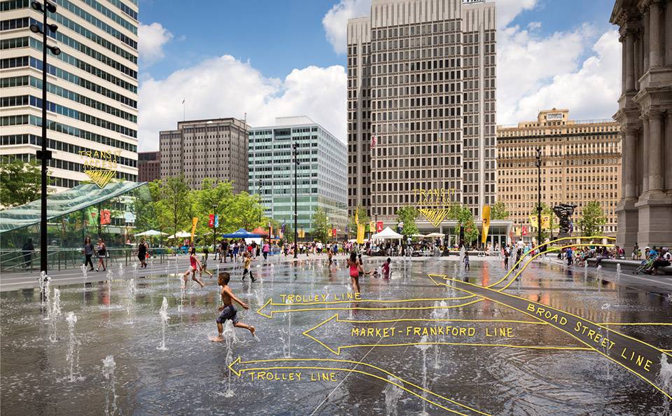廣場的恢復和振新勢在必行。既有的場地不僅應當重新發(fā)揮其作為交通樞紐的功能,每天為7萬名用戶提供安全便利的交通設施,同時還應充分發(fā)揮其位置上的優(yōu)勢,被重塑為一個活躍的公共空間,成為城市真正的心臟。事實上,威廉·潘恩在最初規(guī)劃費城的時候便提出了類似的設想:在城市各處設置五個主要的公共廣場。該項目場地即是當時的“中央廣場”,亦是城市中第一座蒸汽驅(qū)動的供水廠以及第一座公共噴泉所在的位置。承載著過去的一系列愿景,廣場在今天以Dilworth公園的身份重獲新生,它標志著城市在經(jīng)濟、生活和交通上的積極轉(zhuǎn)變,成為了一個向所有人開放的親切場地。