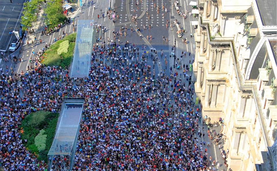 Through the day, Dilworth Park functions as an organized thoroughfare for commuters, a haven for city employees, and common ground for citizens and visitors arriving via public transit below; comfortable for both daily use and large events. Most importantly, it is a place of respite where tourists can rest, families can bring their kids, workers can enjoy lunch, and the city can come together. The team tested myriad scenarios before achieving the final design: a lawn to the south and a café to the north, anchored in the center by a plaza and programmable scrim fountain.
