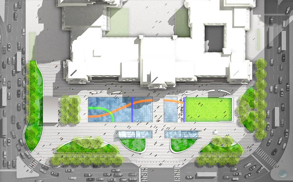 Dilworth公園的改造項目是提高費城市民生活質(zhì)量和街道環(huán)境的一項重要舉措。盡管公園擁有2.5英畝的面積,且同時處于市政廳腳下、費城交通樞紐之上的有利位置,但對于費城市民而言,這里仍然是一個讓人避而遠之的地方。建造于1970年代的廣場和下方的公交大廳形成了一個由眾多樓梯構成的“迷宮”,不僅缺少坡道和電梯,還由于空間的過度劃分而阻斷了與街道和下方交通走廊的連接。此外,加上長期的維護不足,經(jīng)由廣場通勤的人越來越少,場地內(nèi)的家具設施也逐漸毀壞,噴泉無法再使用,樹木也遭到了蟲害侵蝕。