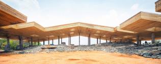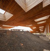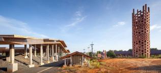 其中70米乘100米的藝術(shù)文化庭院更是為各類文化和宗教儀式提供了發(fā)生之所。建筑師將屋頂置于較低的位置,以和周圍的村莊相映成趣。而1.5米厚的屋頂則面向中心有一個巨大的開口,使得來訪者身處其間時,并不會感到空間的壓抑,反而是開闊且流通之感。