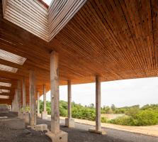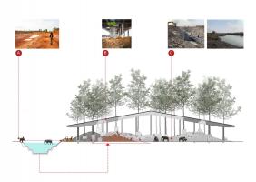 建筑師還在設(shè)計過程中,考慮了可持續(xù)設(shè)計的可能?;谒Y源的儲備和發(fā)掘,濕潤的水氣被重新帶回到了這片干旱的土地。庫伊族人也可以在土生土長的土地上進行新一輪的樹木種植,以進一步固化當(dāng)?shù)氐乃?。大象跟族人間的關(guān)系,也是兩者未來可持續(xù)發(fā)展的核心基礎(chǔ)。庫伊族人和大象,也最終跟舊時的祖先那般,和大象同居于一片屋頂下。