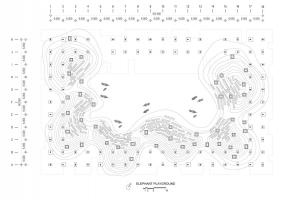 建筑師通過六個土墩的設(shè)置,將庭院的三側(cè)進行了圍合,并將第四側(cè)留空,以給大象和來訪者提供合適的入口空間。建筑師將起伏坡度控制在1.2米到4米之間,來呼應(yīng)起伏的自然地形。同時,這種特定自然場景的模擬,還使得大象可以到處閑逛,從而免于蚊蟲的叮咬,并降低自身體溫。