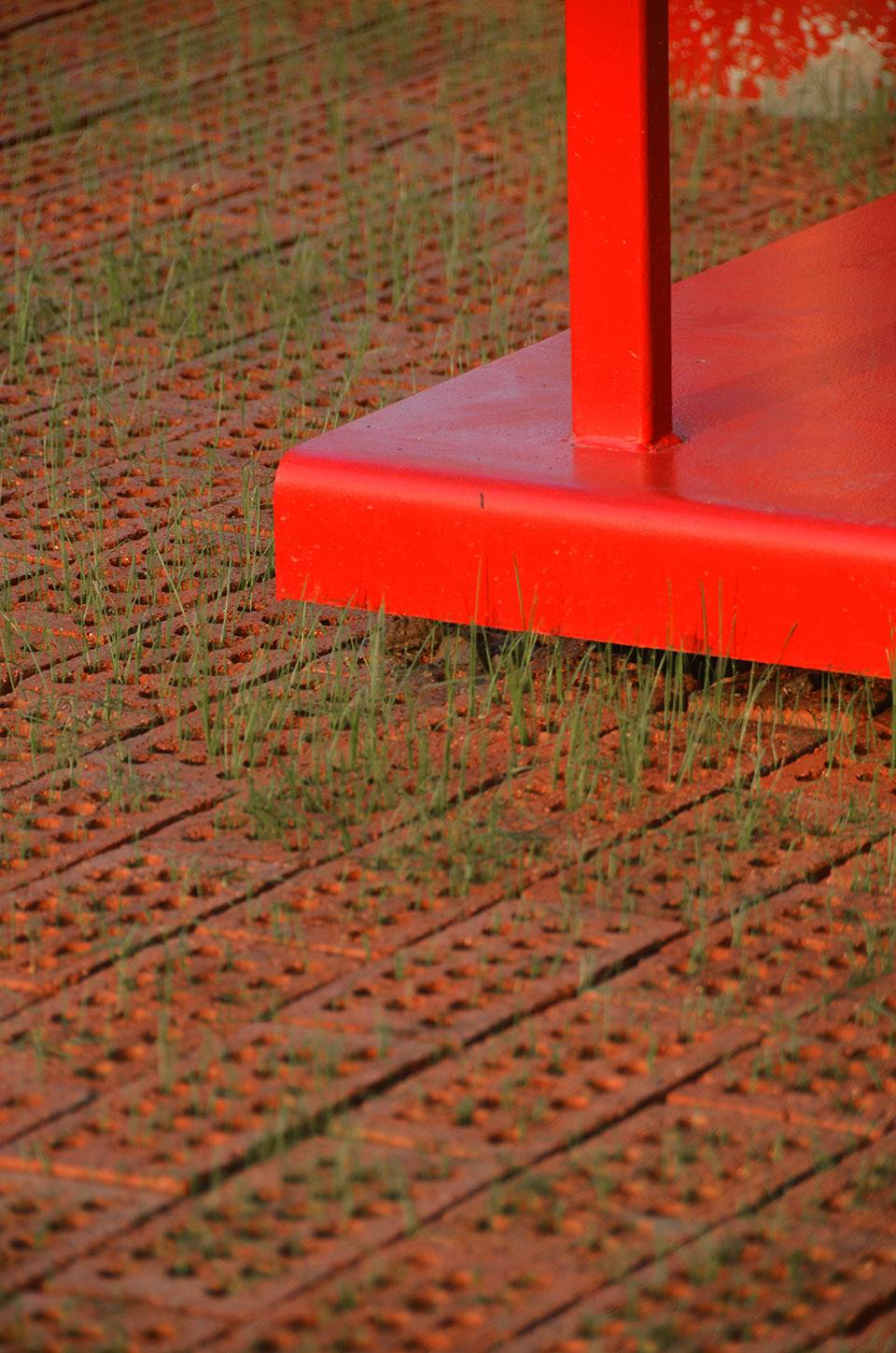 ▲細(xì)部,紅色的結(jié)構(gòu)和地磚,details, red structure and brick ?張浩然 Zhang Haoran