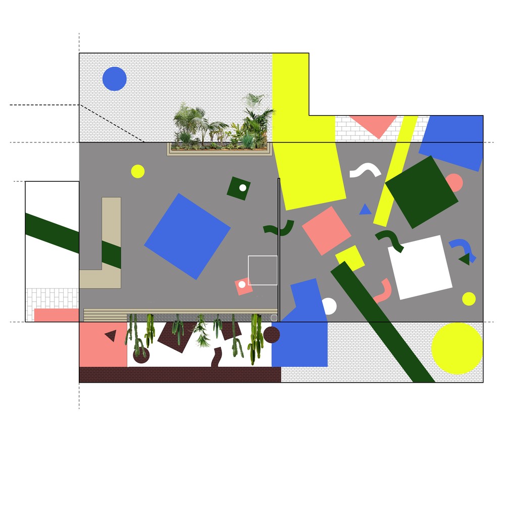 為了慶祝與馬德拉( Madera )品牌合作,在洛杉磯市中心的第一家美國(guó)展廳的順利開設(shè),獨(dú)立設(shè)計(jì)品牌 Hem 委托舊金山設(shè)計(jì)師 Clark Thenhaus ( Endemic Architecture 的創(chuàng)始人兼總監(jiān))在一個(gè)庭院空間內(nèi)打造出一片五彩繽紛的裝置藝術(shù)展示空間。五彩庭院( Confetti Courtyard )是一個(gè)充滿活力的裝置作品,它將整個(gè)庭院空間想象成一個(gè)極具動(dòng)感的建筑,其中布置有多彩的家具和景觀元素。在這里,各種豐富的社交活動(dòng)得以開展。
