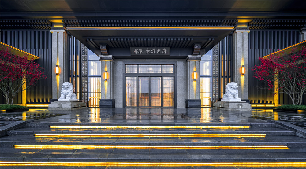 結(jié)合序列水景及樹陣,營造具有陣列感、儀式感的迎賓大道,大空間、小置景的多重設(shè)計,保證空間的品質(zhì)感和完整性。