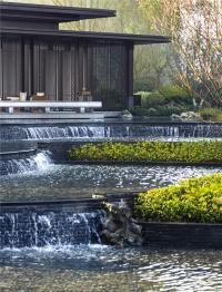 自然疊水、山石、亭臺、廊榭,詩意山水流轉(zhuǎn)的當下,片巖、孤松點綴其中,似山水畫卷。佳人立于其中,宛如畫中人。