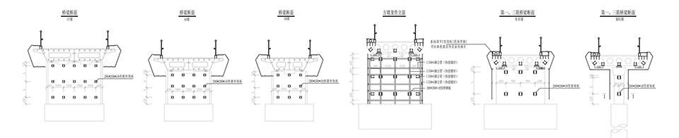 Line A is 213m in length, 0.55m width is reserved on both sides of the bridge deck, railings and light poles are installed, and the sub-joint piers are partially widened. The bridge is arranged in three sections: the first joint span is 2×8.5+4×10m =57m, made of continuous concrete hollow slab, the beam height is 0.6m, the passage width is 2.48~4.24m; second joint span layout 15+21+21+16m=73m, made of continuous steel box girder, the beam height is 1.1m, the passage width is 5.23~9.23m; the third joint span is 5×10m=50m, made of continuous concrete hollow slab, the beam height is 0.6m, and the passage width is 2.82~3.73m.