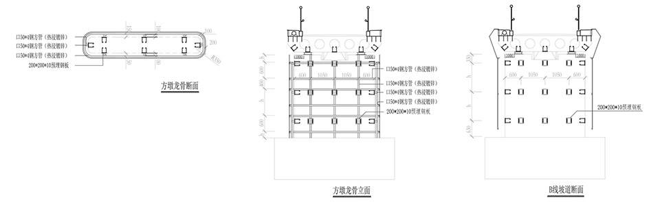 Line B starts from Dayuan Central Park and connects to the second connection of Line A flyover, and merges into Line A flyover. Line B has a total length of 76m, using reinforced concrete continuous hollow slabs, 0.55m width is reserved on both sides of the bridge deck, railings and light poles are installed, the bridge is arranged in two sections: the first joint span is 12+9m=21m, and the beam height is 0.6m, the second span is 9.5+13+12+12m=46.5m, the beam height is 0.6m, and the passage width is 2.7~4.49m.