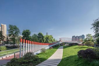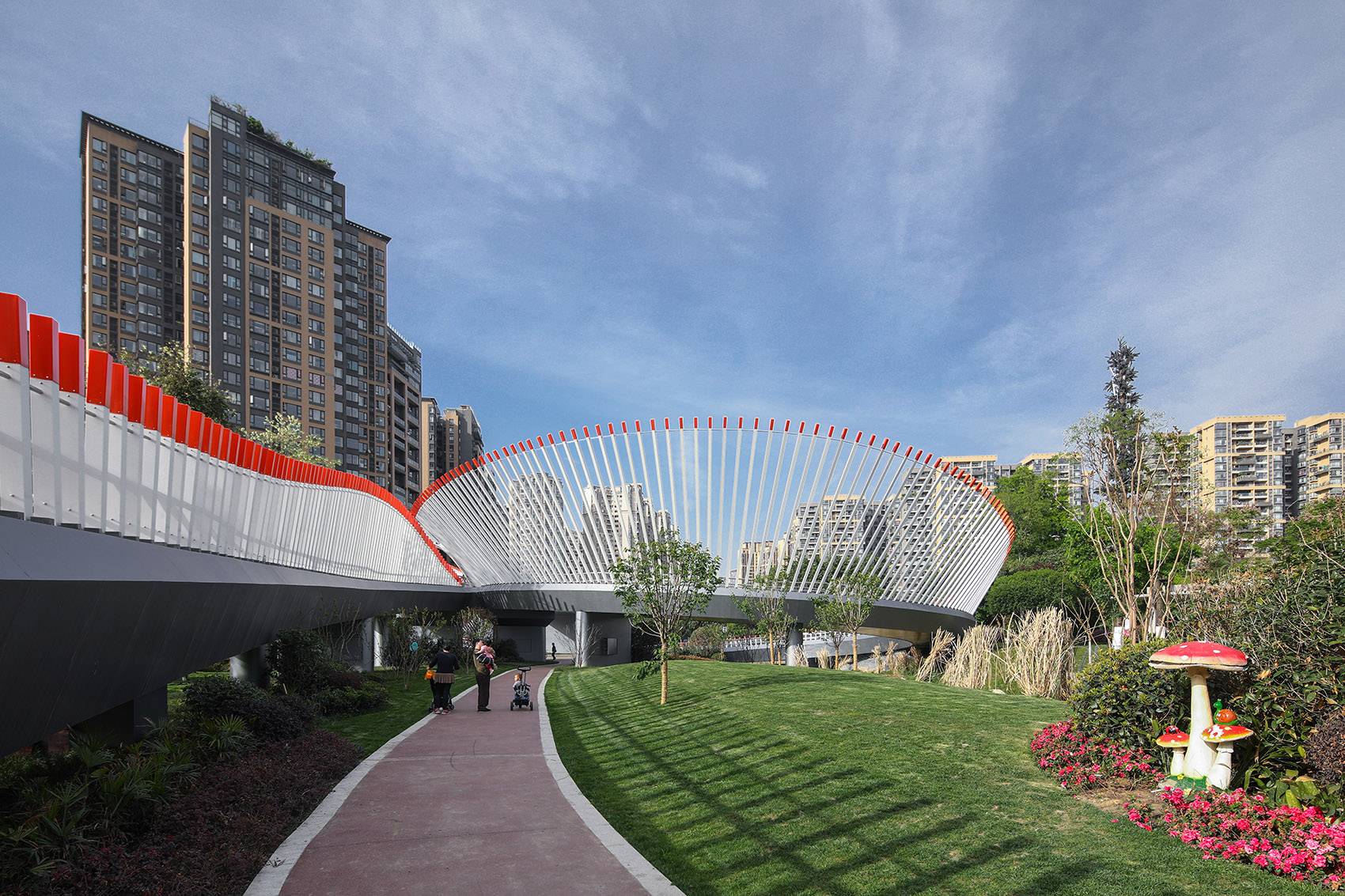 ▲橋梁連接了公園與城市空間及綠地,The bridge connects Dayuan Park to the urban space and green landscape ? 存在建筑