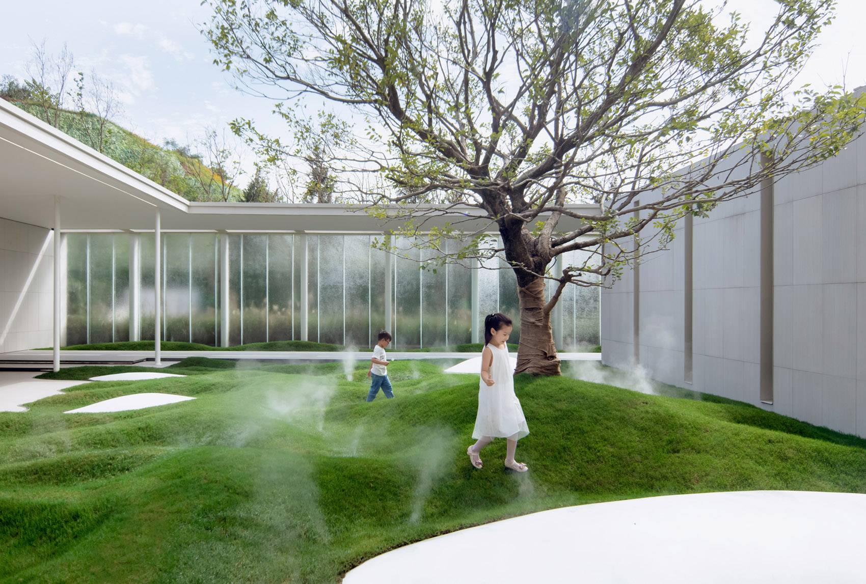 ▲玻璃讓整個圍合的場地空間變得通透,glass make the whole enclosed space transparent ?河貍景觀攝影