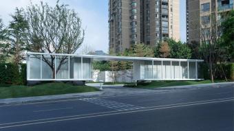 The entrance makes use of the shape of the cloud to find the context of design, using the high-permeability glass to create a hazy feeling in a poetic way. The overall design integrates with the surroundings delicately and lightly, like the state of cloud, blending with nature, and leaping above the nature.