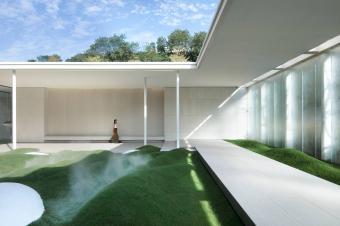 設(shè)計巧妙的消除外部不利環(huán)境和映襯了內(nèi)部之間聯(lián)系,讓自然滲透,就像是被云遮擋的陽光透露出朦朧之美,在不同光影的變化之下,以朦朧的形態(tài)對話外界的自然。