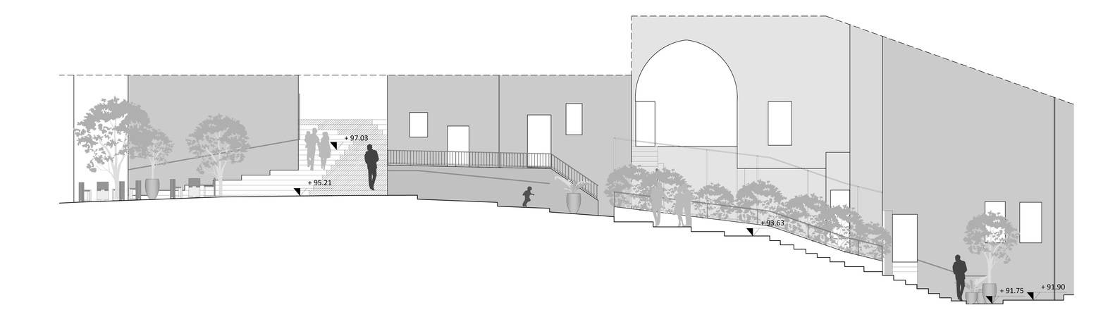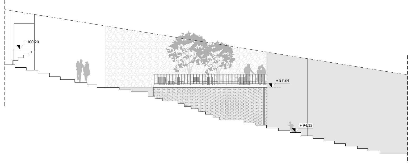 Chaarani臺(tái)地是聯(lián)合國人居署資助的一個(gè)公共空間項(xiàng)目,位于黎巴嫩黎波里的一個(gè)低收入社區(qū)Qobbe。這個(gè)項(xiàng)目由 EVA 工作室設(shè)計(jì),國際團(tuán)結(jié)會(huì)實(shí)施,修復(fù)了穿過社區(qū)的公共臺(tái)地。這些臺(tái)地的結(jié)構(gòu)在面對洪水和其它挑戰(zhàn)時(shí)異常脆弱,但是它們聯(lián)系黎波里歷史中心和露天市場的作用十分重要。這個(gè)項(xiàng)目面臨著不同的挑戰(zhàn):從當(dāng)?shù)乩璋湍凵鐓^(qū)與敘利亞難民(他們在這個(gè)社區(qū)的人口占比約15%)間的城市更新和社會(huì)凝聚問題,到?jīng)_突后期的恢復(fù)難題。場地毗鄰近期兩個(gè)社群發(fā)生沖突的位置 Jabal Mohsen 和 Tabanneh,社區(qū)內(nèi)的緊張關(guān)系和宗教界限在此層疊,有時(shí)還會(huì)越過無形的邊界。