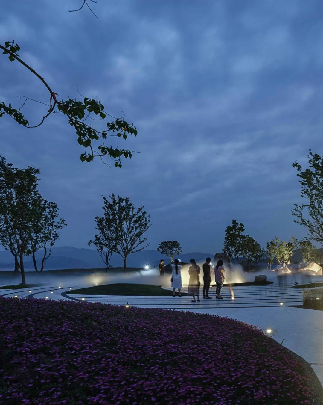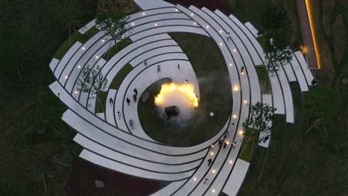 連綿的坡地與延綿山脈呼應(yīng),當(dāng)?shù)靥赜械淖鲜V說著場(chǎng)所的記憶。旋渦狀的白石青沙如一道道星軌,記錄我們來時(shí)的足跡。承載著獨(dú)特的場(chǎng)所記憶,詩(shī)意地存在于此時(shí)此地。