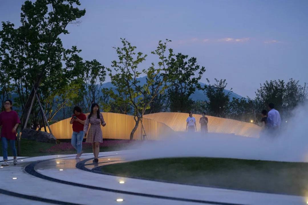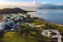 騰空架起的拱橋?qū)⒈缓恿鞲盍训膱?chǎng)地聯(lián)系,形成一條自然流暢的曲線園路。當(dāng)人們駐足于此向海岸眺望,一幅山海的畫卷從腳下徐徐展開。