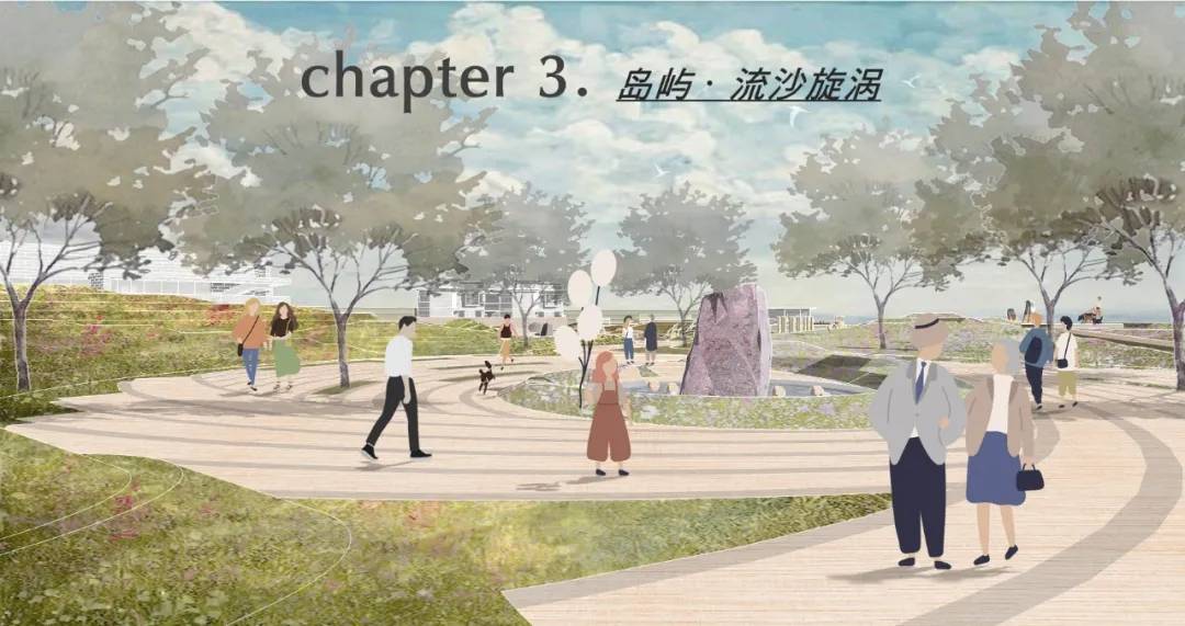 高大的、本地的、樸素的、四季鮮明的: 選種了耐鹽堿的本地植物,包括芒草、木賊、烏桕等,設(shè)計(jì)力圖保留場(chǎng)地原生的芒草和大樹,以融入人們與環(huán)境的互動(dòng)。