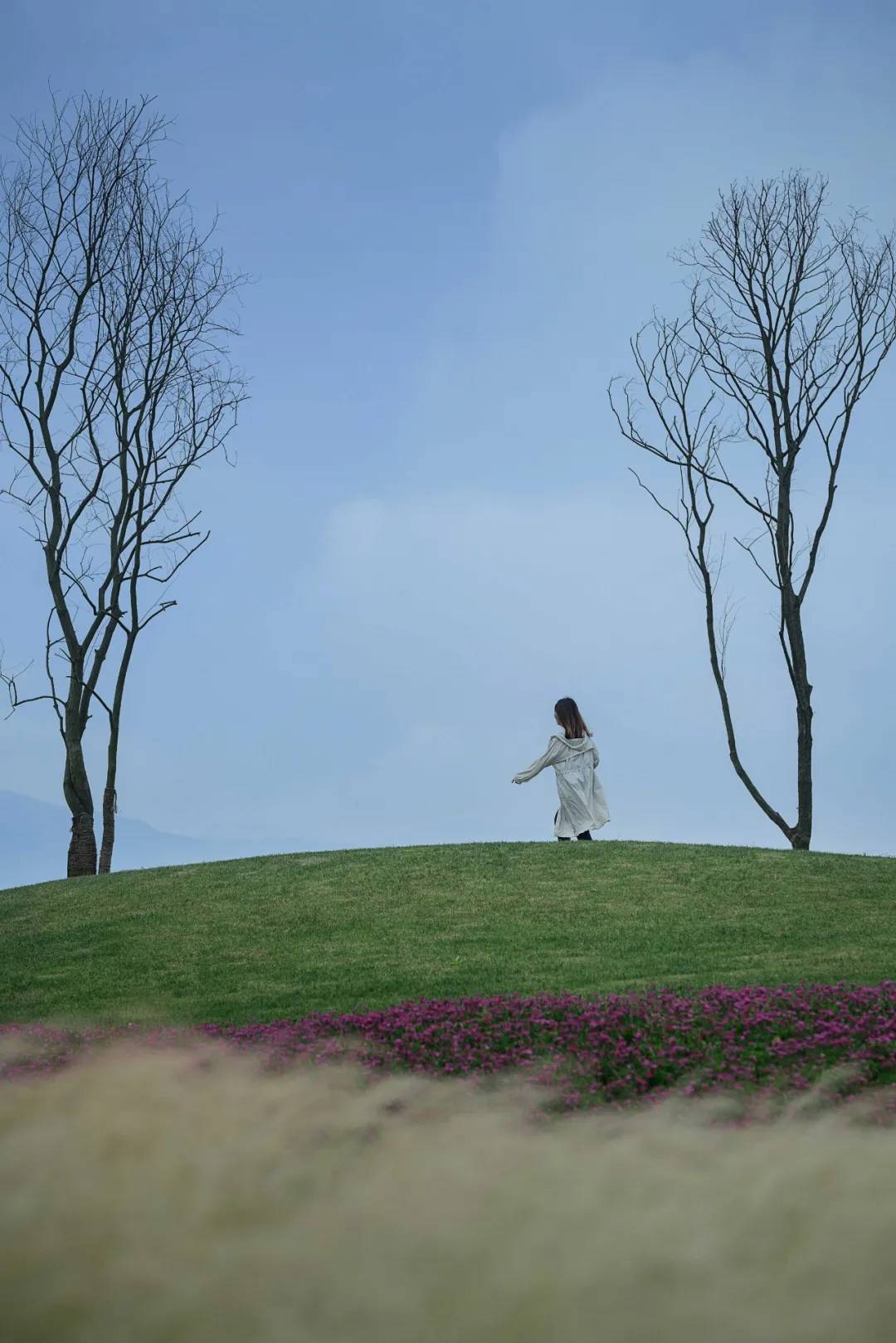 美麗而堅(jiān)韌的芒草柔化了道路的邊界,與朦朧的遠(yuǎn)山形成呼應(yīng)。
