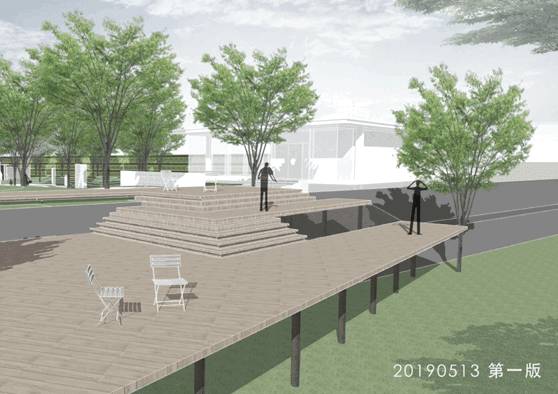 首先,三角形紅線范圍以后將作為展覽館選址使用,因此不可以做任何帶有結(jié)構(gòu)的景觀構(gòu)筑;河道盡頭水壩范圍內(nèi)景觀不可使用;未來規(guī)劃道路橫穿建筑前場(chǎng),因此建筑周邊應(yīng)控制拆安改量,需盡可能避免構(gòu)筑物的堆砌……多重因素制約下,景觀的發(fā)揮空間被極大地壓縮。但與此同時(shí),“制約“提醒我們擯棄常規(guī)手法,調(diào)轉(zhuǎn)思路為場(chǎng)地激發(fā)出另一種可能。