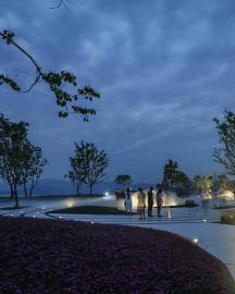 人與場(chǎng)地的連接性(重參與): 尊重原場(chǎng)地,保留帶有原生記憶的物質(zhì)元素,大片芒草、紫色原石、本土品種樹木……呼應(yīng)丘陵地貌打造大地藝術(shù),柔軟的芒草與海風(fēng)對(duì)話,獨(dú)有的紫色原石散布在各個(gè)角落,具有原生質(zhì)感的場(chǎng)地,吸引人們前來探索。