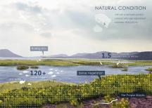 當(dāng)?shù)匾吧鷦?dòng)植物群落發(fā)達(dá),土質(zhì)為微鹽堿濕地?;貎?nèi)荒草密布,場(chǎng)地遍布大量天然紫色原石。山形綿延,水天一色,素寂震撼、曠野高遠(yuǎn),生態(tài)基底優(yōu)良。在這里山海蟲魚才是主人,設(shè)計(jì)師舍不得這片天地原有的樣貌,秉承尊重場(chǎng)地的原則,用自然的語言、質(zhì)感、筆觸,著力描繪一種簡(jiǎn)素、質(zhì)樸、生態(tài)的空間形式,以此觸發(fā)對(duì)于回歸自然生活的向往。