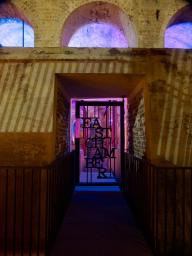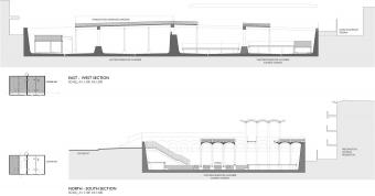 The eastern chamber has been conserved with new timber columns and a waterproof concrete structure over, stabilising the brickwork and forming the base for the new landscaped park above.